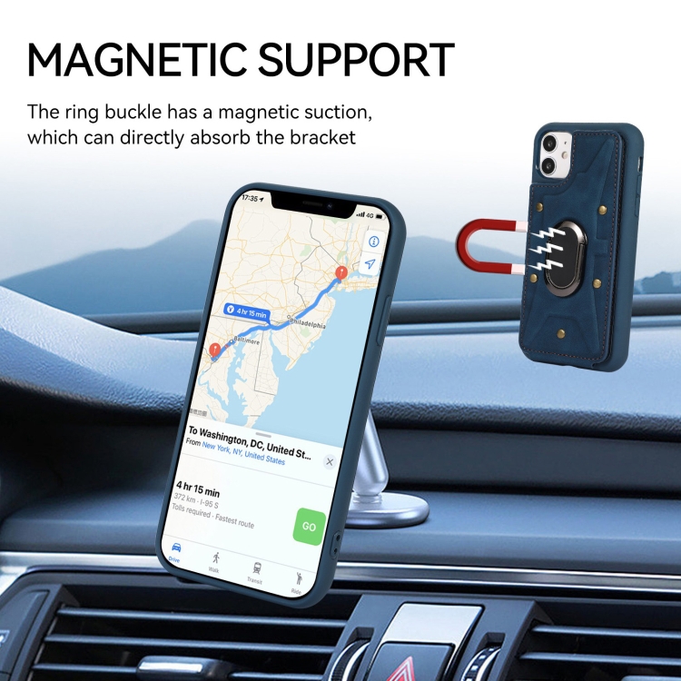 Funda para iPhone 11 Armor Ring Wallet Back Cover (Azul)