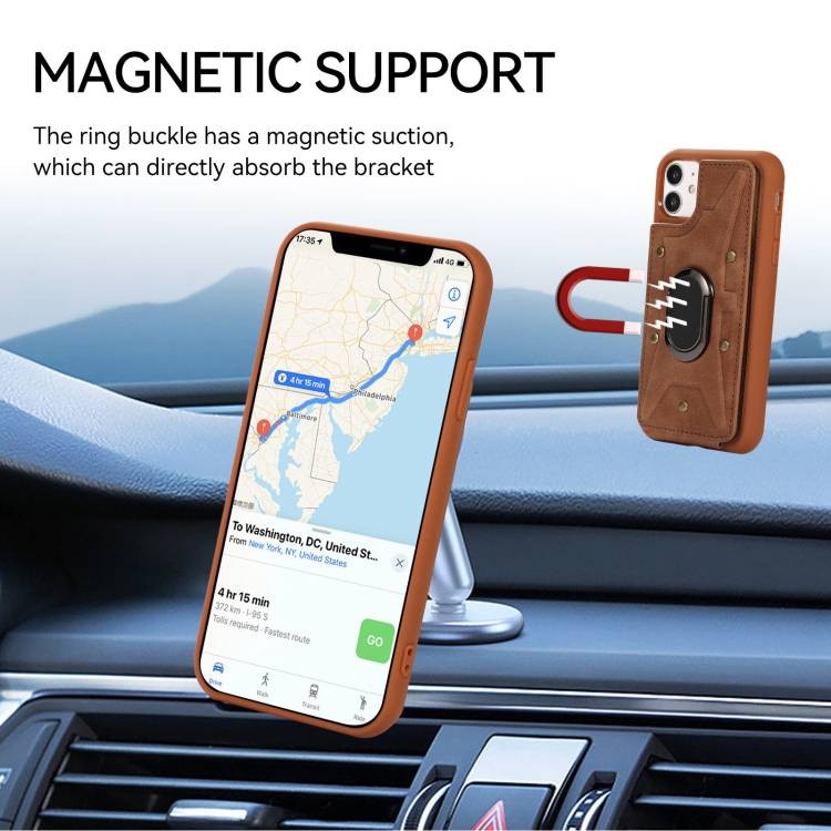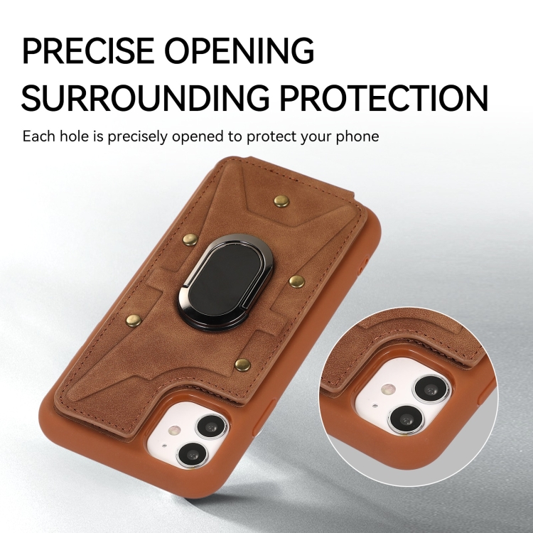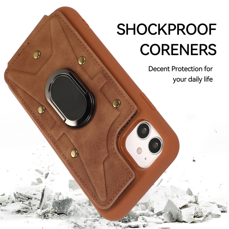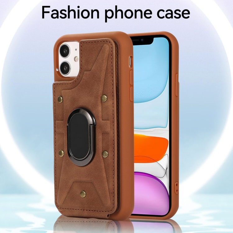 Funda para iPhone 11 Armor Ring Wallet Back Cover Phone Case (Marrón)