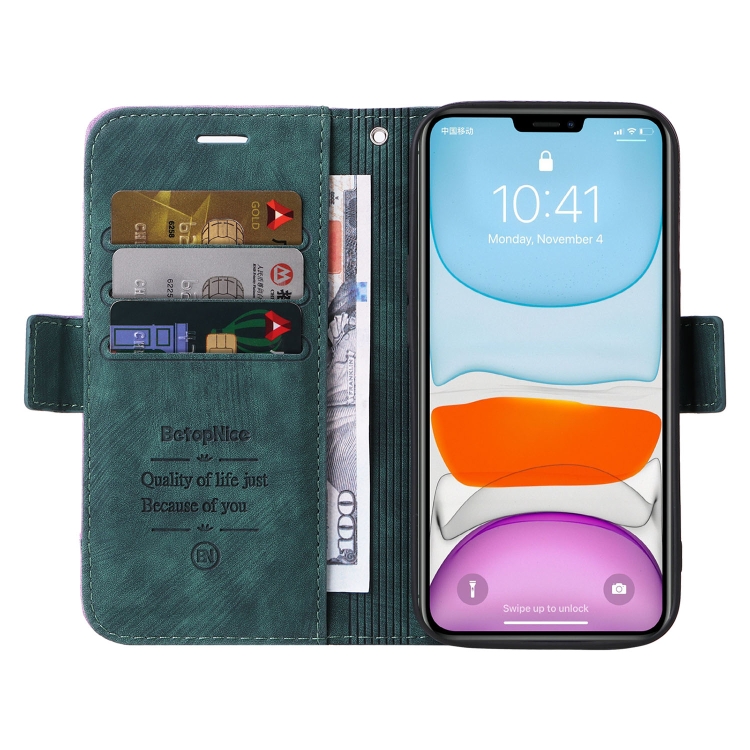 Estuche de teléfono Betopnice para iPhone 11 con hebilla de doble cara (Verde)