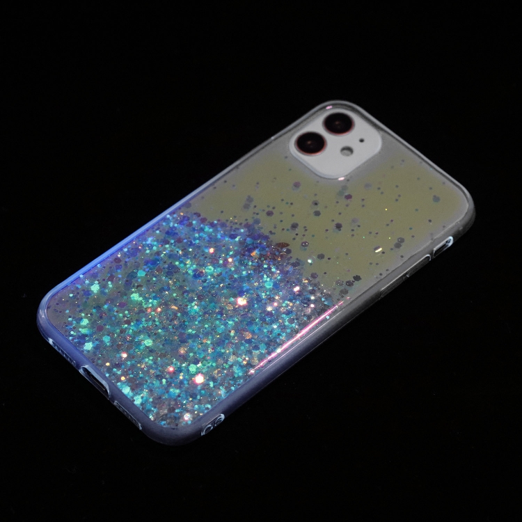 Funda para iPhone 11 TPU con Polvo de Brillo Noctilucente y Marco Transparente (Blanco)