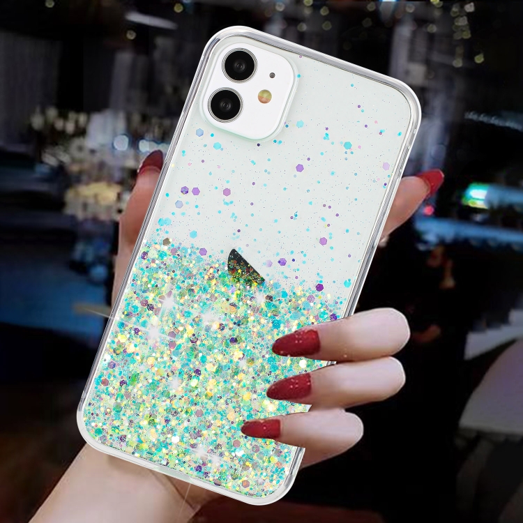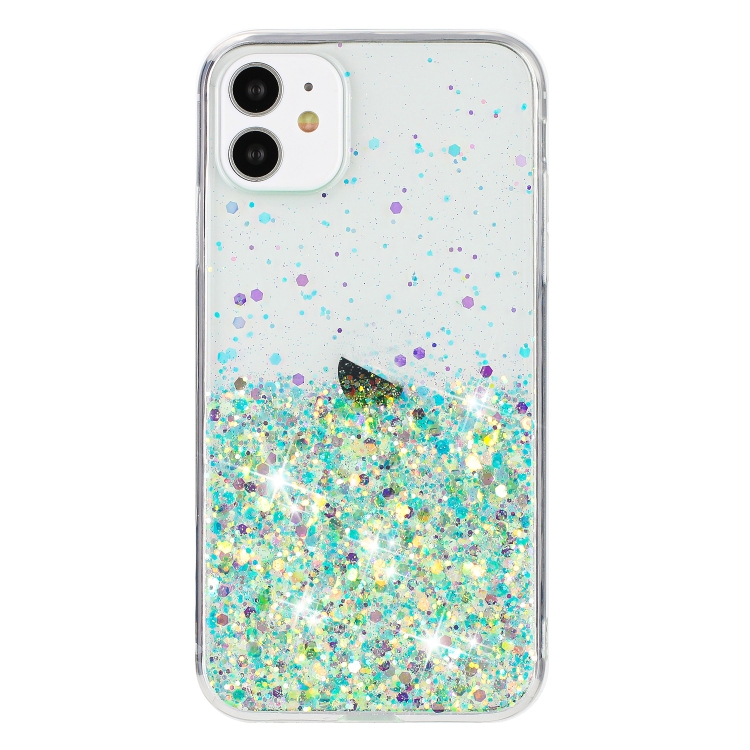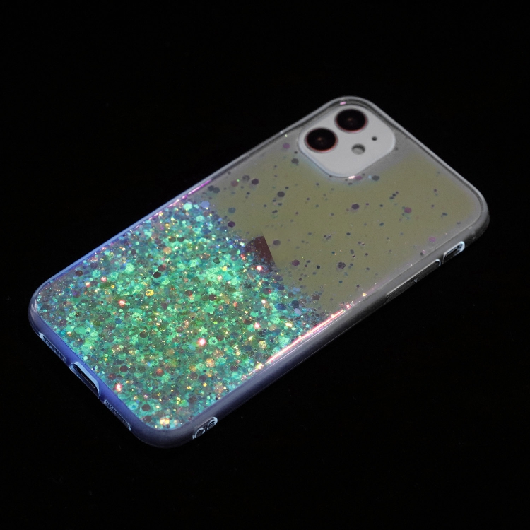Funda para iPhone 11 TPU con Polvo de Brillo Noctilucente y Marco Transparente (Verde)