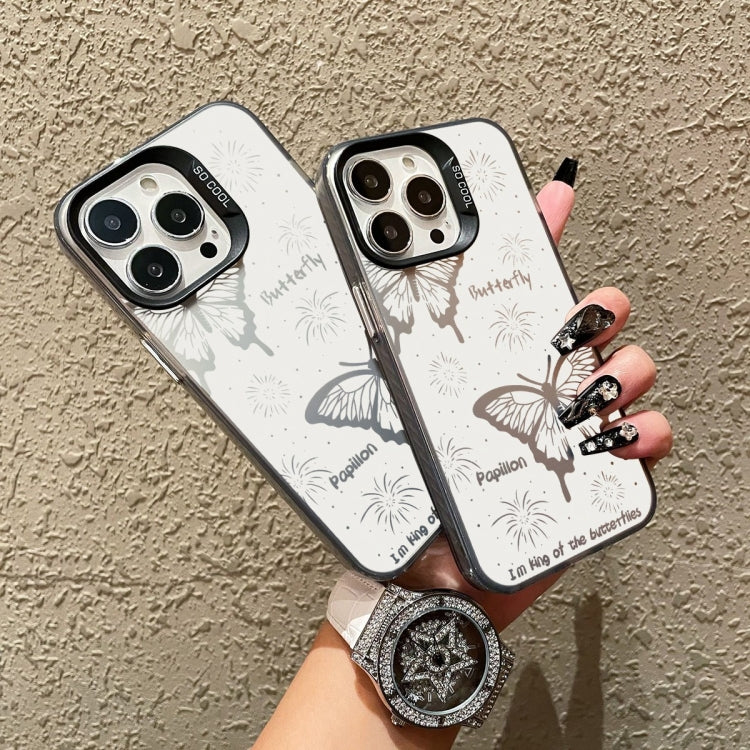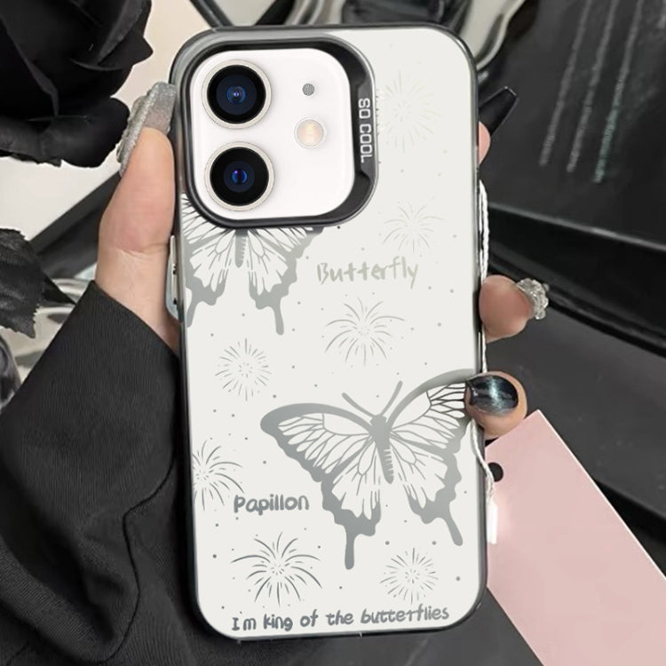 Caja híbrida para iPhone 11 TPU y PC con pintura plateada (Mariposa hueca negra)