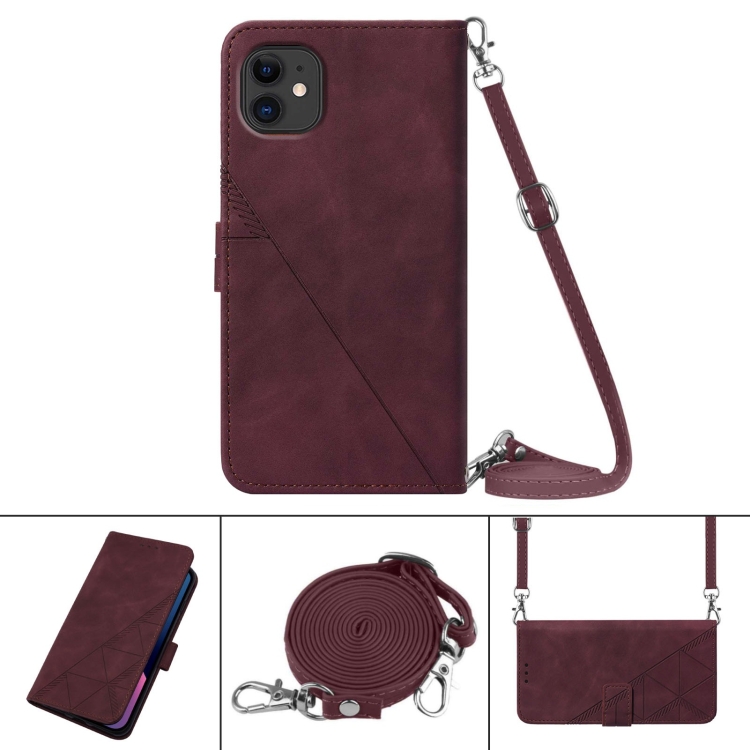 Funda para iPhone 11 Crossbody 3D de Cuero con Tapa en Relieve (Rojo Vino)