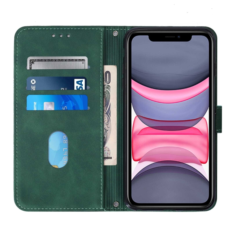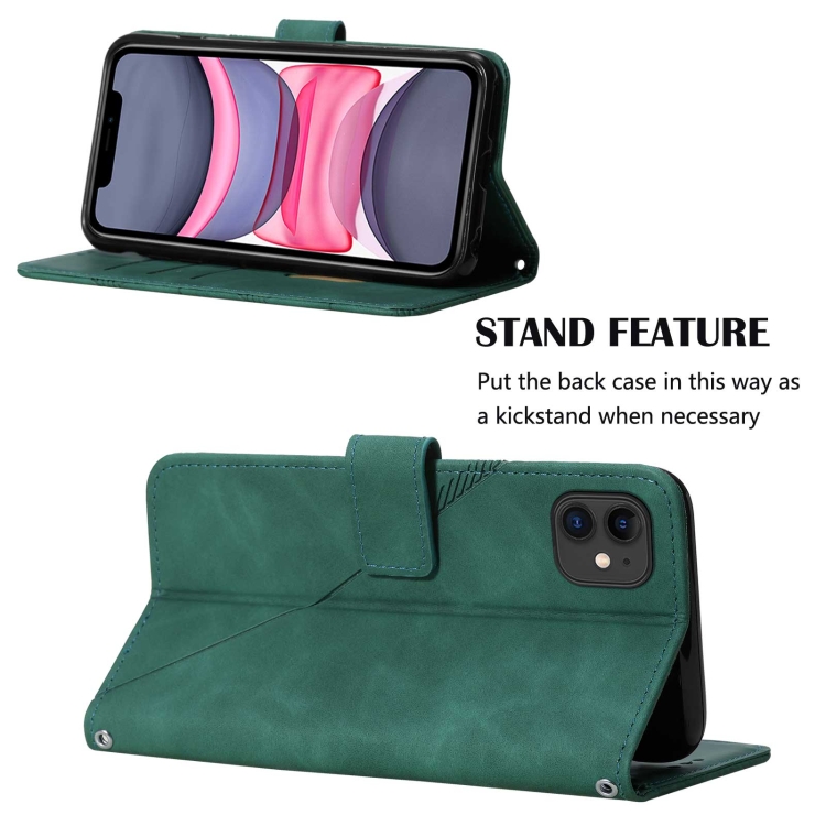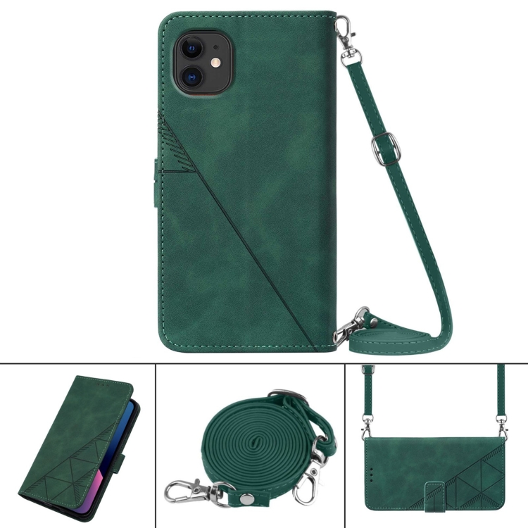 Funda de Cuero Crossbody para iPhone 11 con Tapa En Relieve (Verde Oscuro)