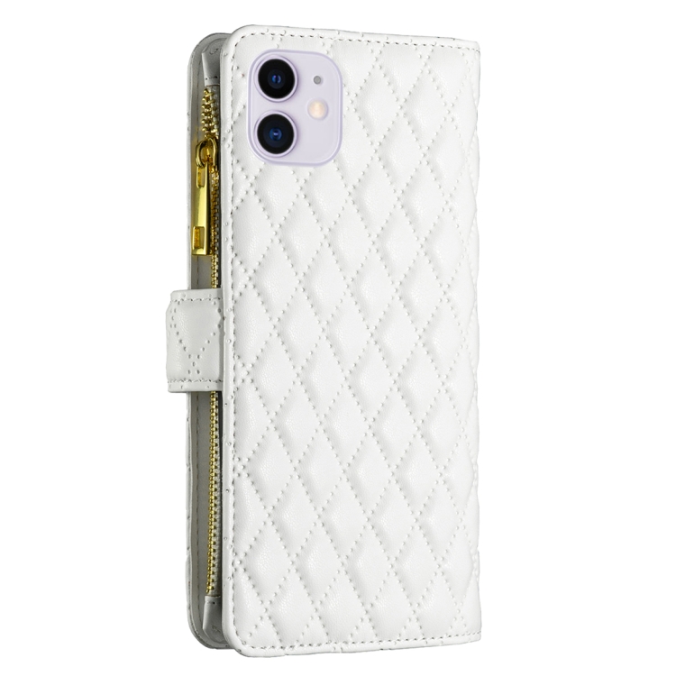 Funda para iPhone 11 Diamond Lattice Zipper Wallet de Cuero con Tapa (Blanco)