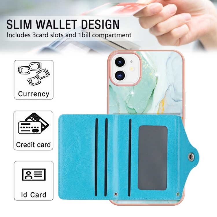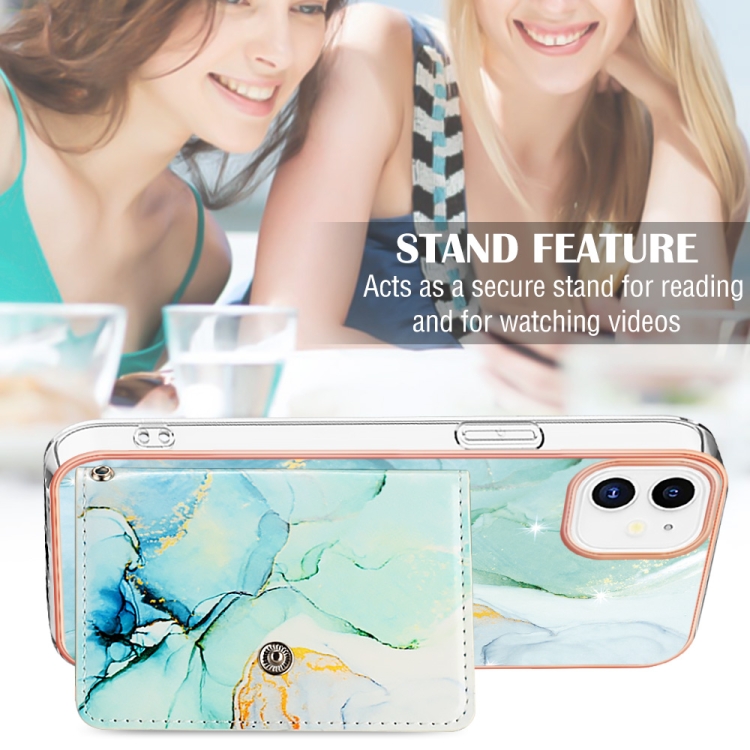 Estuche para Teléfono iPhone 11 con Ranura para Tarjeta Imd Patrón de Mármol (Verde)