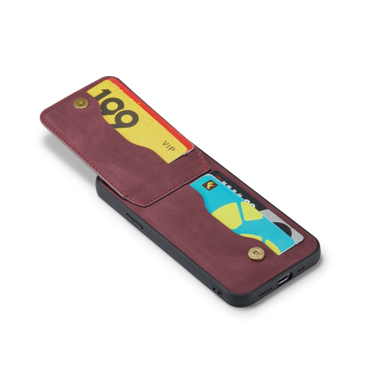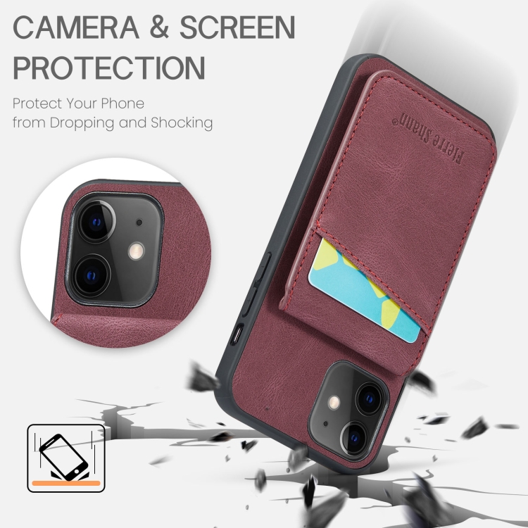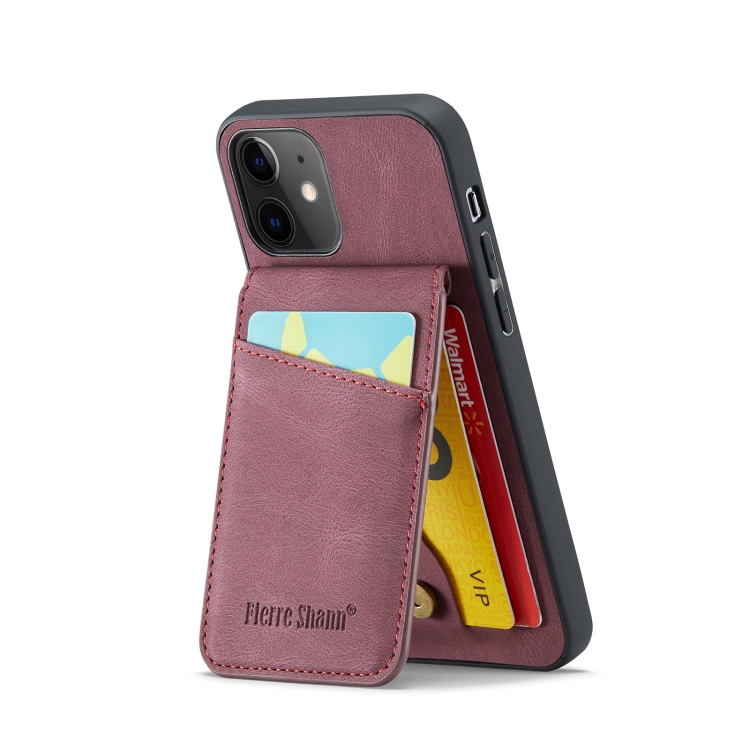 Funda para Teléfono Fierre Shann Crazy Horse TaRJetero Contraportada Pu para iPhone 11 (Rojo Vino)