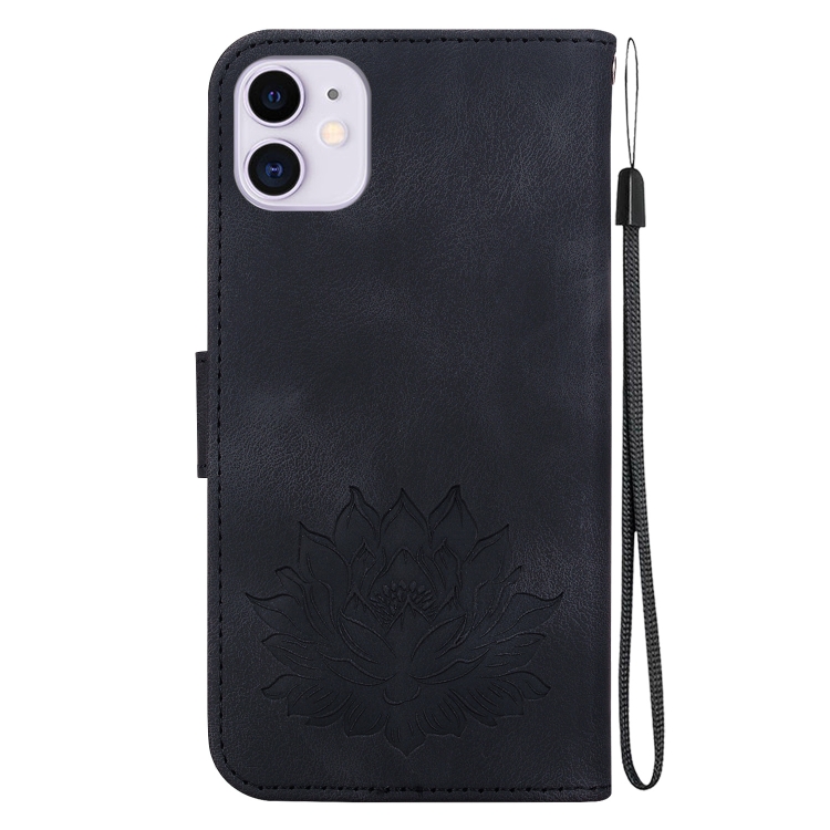 Funda para iPhone 11 Cuero Relieve de Loto (Negro)