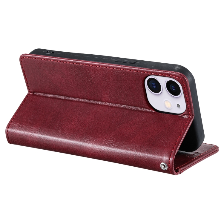 Funda de Cuero para Teléfono iPhone 11 con Billetera para 6 Tarjetas (Rojo Vino)