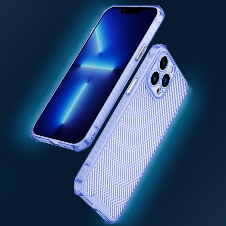 Funda de Teléfono para iPhone 11 a Prueba de Golpes con Textura de Fibra de Carbono (Azul Transparente)