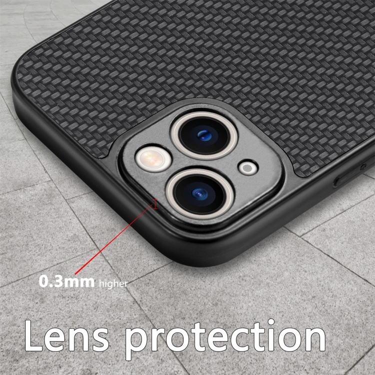 Funda de teléfono para iPhone 11 con tapa Trasera de cuero y textura de fibra de carbono (Negro)