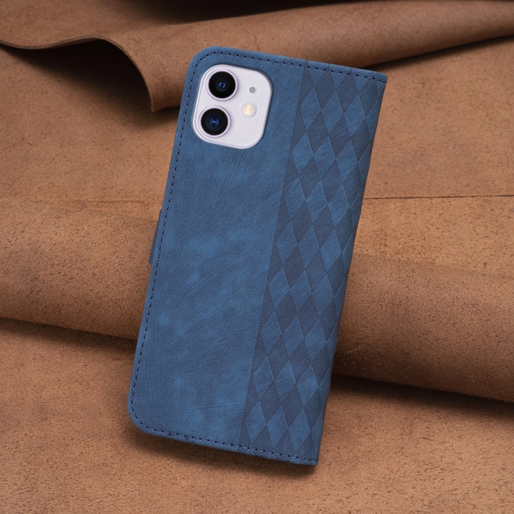 Funda de Teléfono iPhone 11 Cuero En Relieve a Cuadros (Azul)