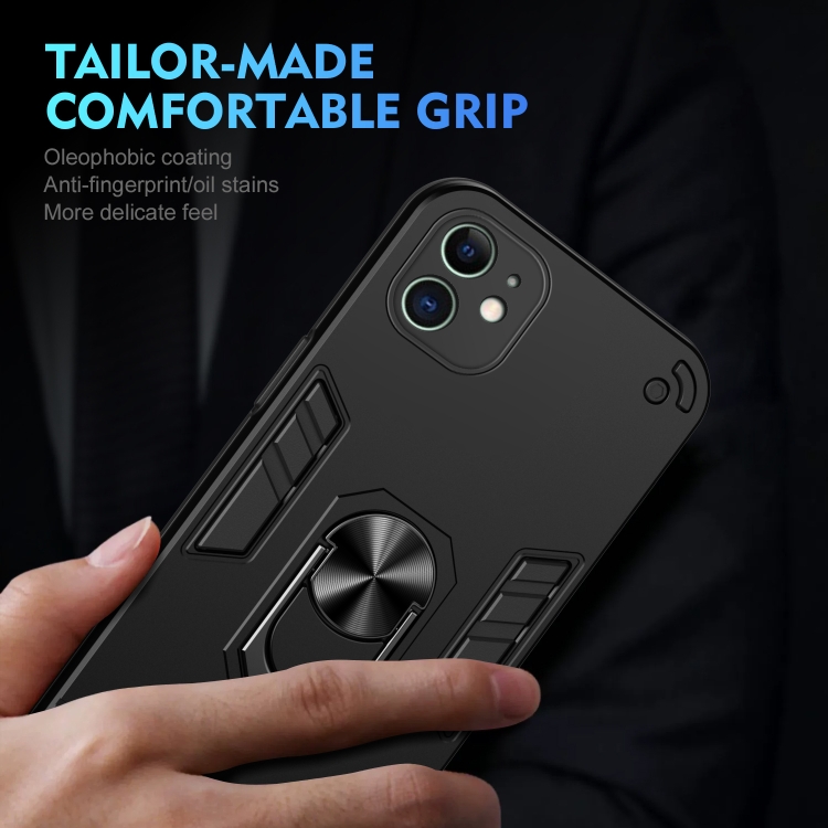 Funda para Teléfono iPhone 11 con Soporte de Anillo de Metal a Prueba de Golpes (Negro)