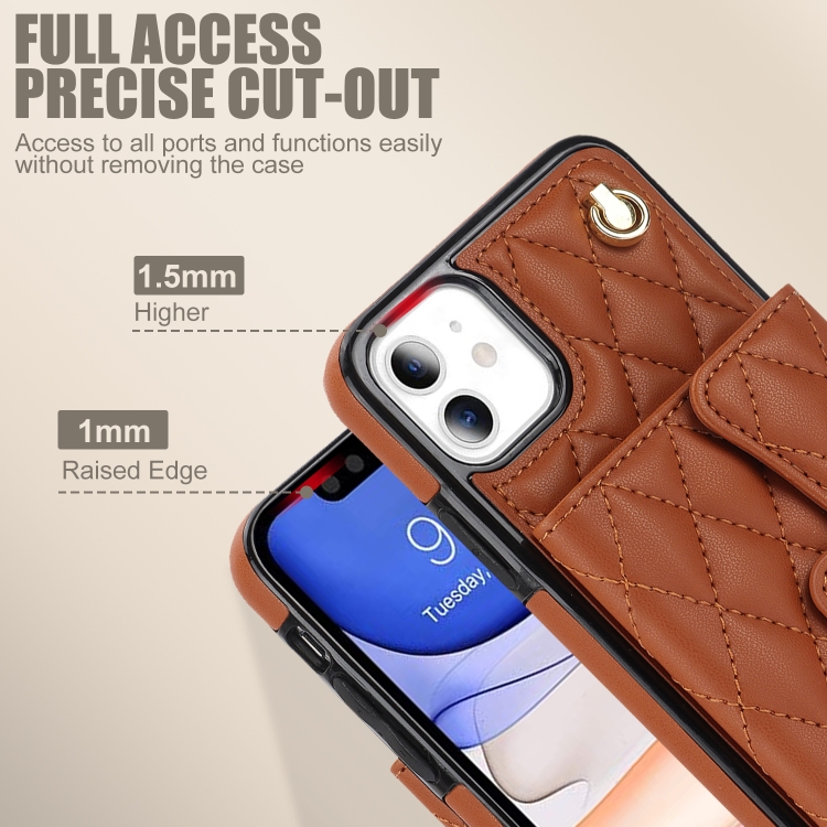 Funda para Teléfono iPhone 11 Cuero con Billetera Horizontal Rombal Cruzada (Marrón)