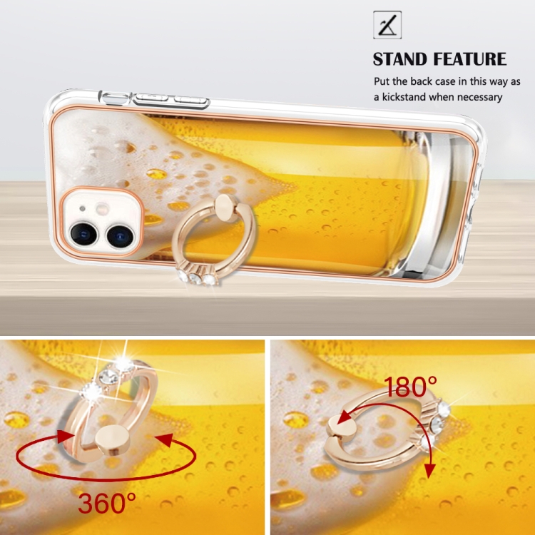 Funda para iPhone 11 Galvanoplastia Imd Doble Cara con Soporte para Anillo (Cerveza de Barril)