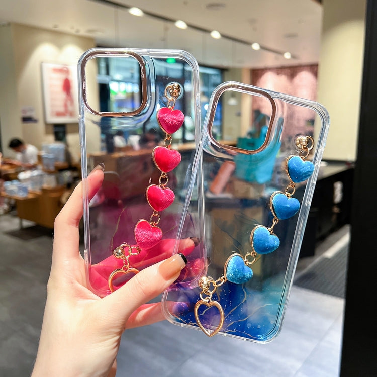Funda para iPhone 11 Gold Halo Marble Pattern con Pulsera Love (Rojo)