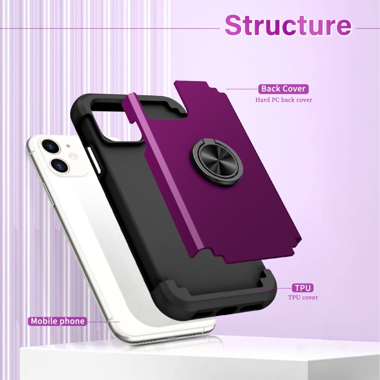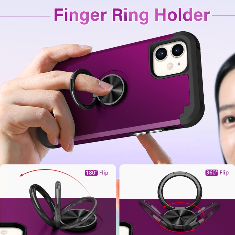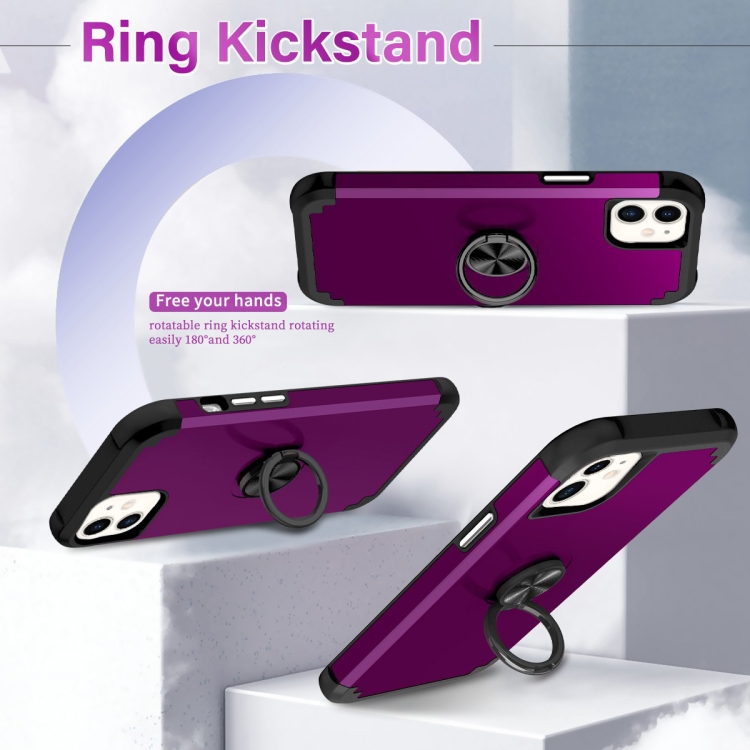 Funda Magnética para Teléfono iPhone 11 L2 con Soporte de Anillo Giratorio (Púrpura Oscuro)