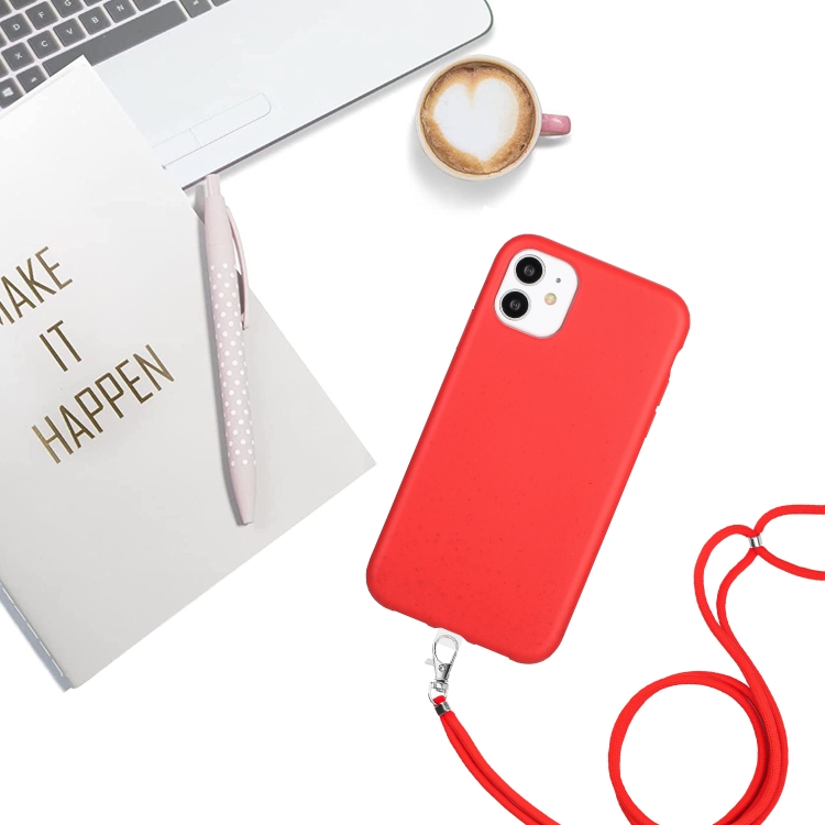 Funda para iPhone 11 Magsafe Magnética de Paja de Trigo y TPU con Cordón (Rojo)