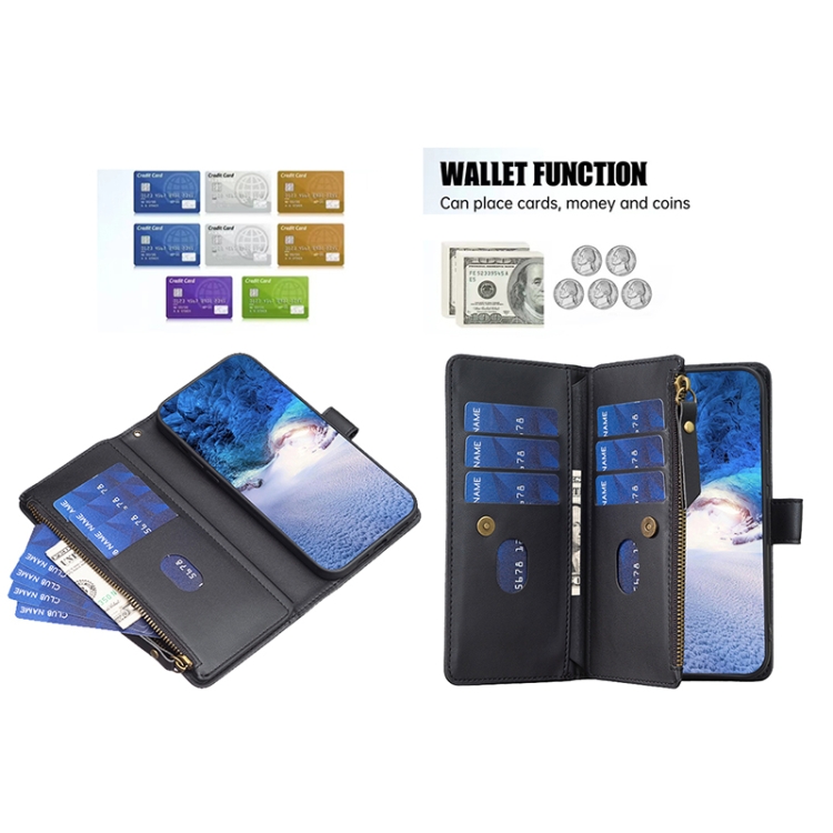 4. Cartera con cremallera: la ranura para múltiples tarjetas Super puede contener 9 tarjetas;La apertura y cierre del compartimento de efectivo con cremallera puede proteger su efectivo.¡Cómoda y práctica para salir basta con una bolsa para el móvil!