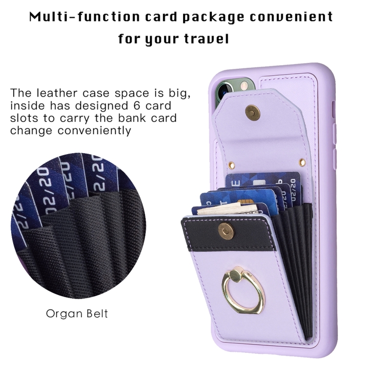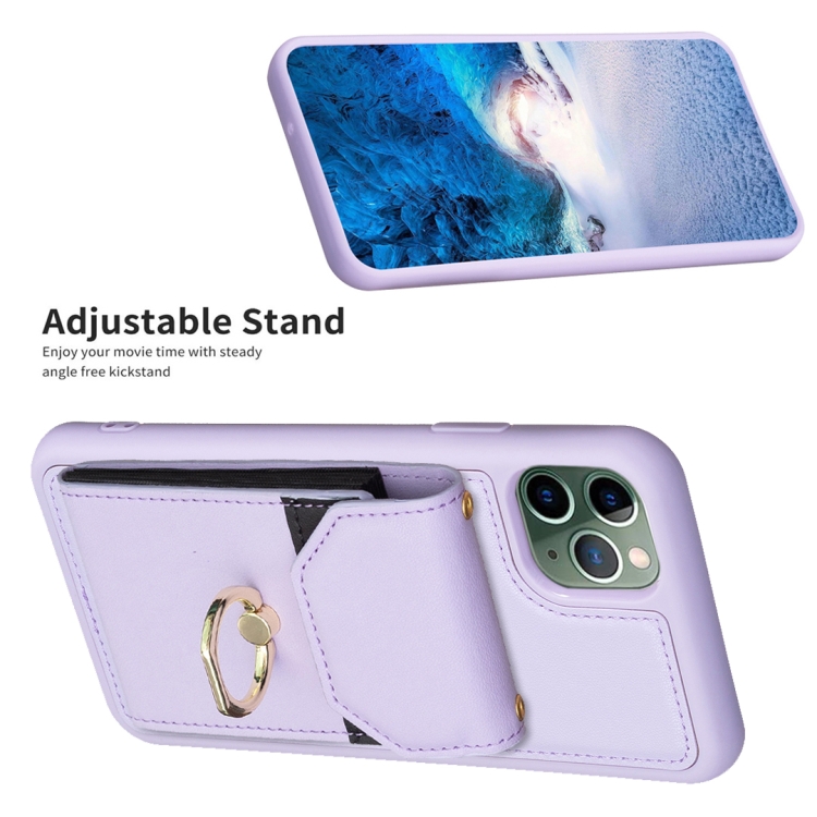 Funda para Teléfono Bf29 para iPhone 11 Pro con Soporte para Anillo y Bolsa para Tarjeta (Púrpura)