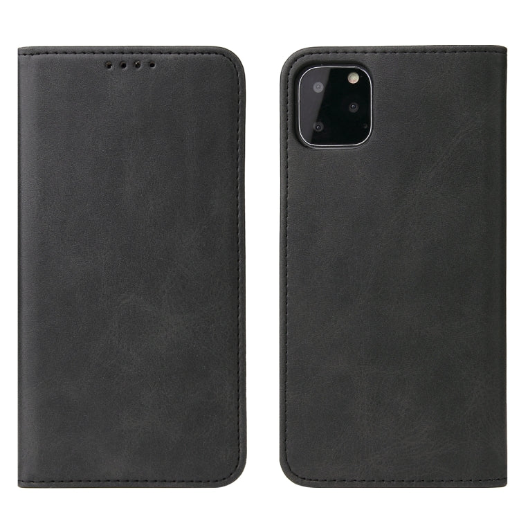 Funda de Cuero iPhone 11 Pro Calf Texture con Tapa Horizontal Magnética Soporte y Ranuras para Tarjetas (Negro)