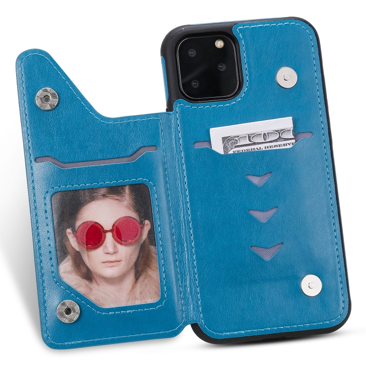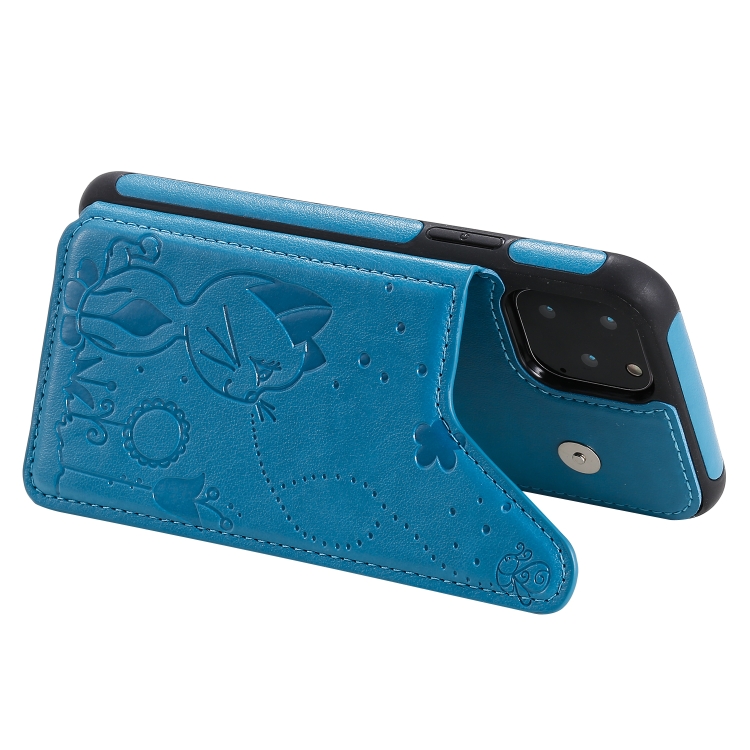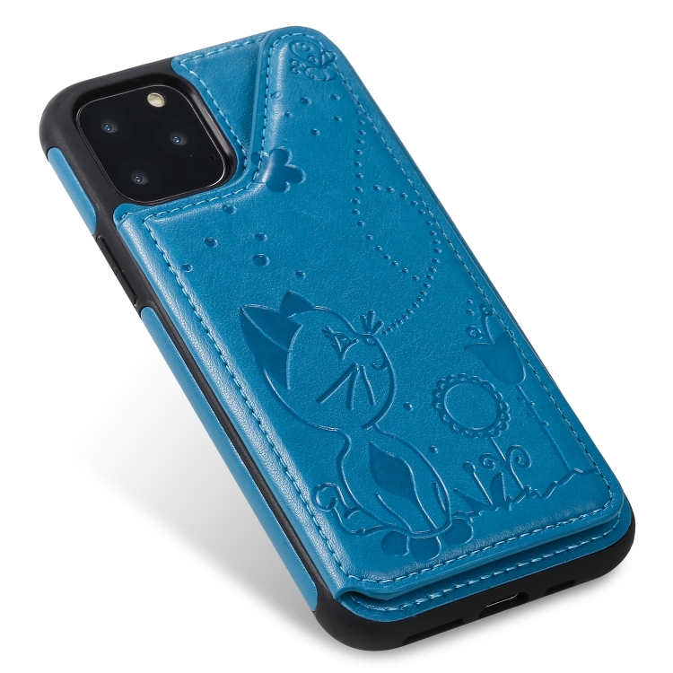 Estuche Protector para iPhone 11 Pro Cat Bee Patrón en Relieve a Prueba de Golpes con Ranuras para Tarjetas y Marco de Fotos (Azul)