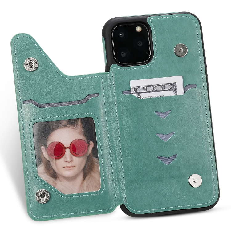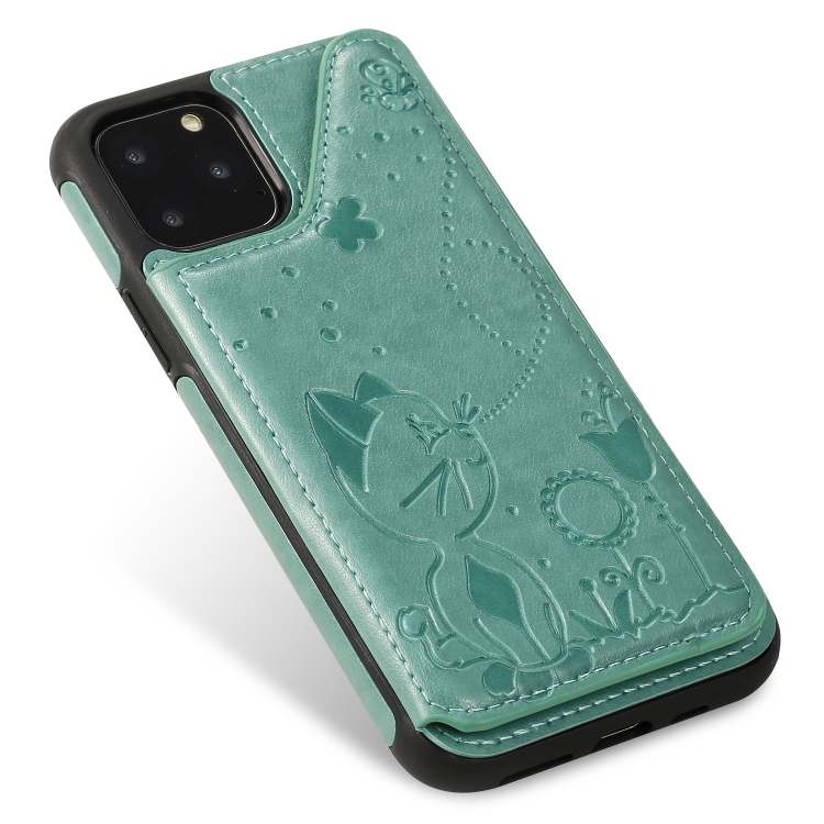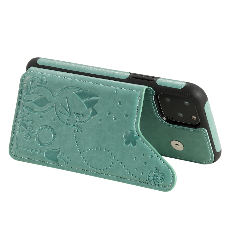 Estuche protector para iPhone 11 Pro Cat Bee patrón en relieve con ranuras para tarjetas y marco de fotos (Verde)