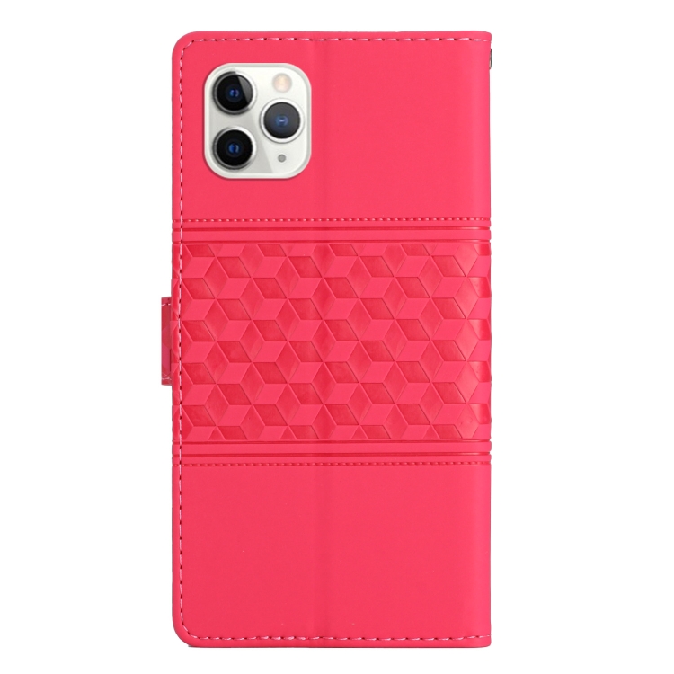 Funda para iPhone 11 Pro Diamond Embossed Skin Feel Leather con Cordón (Rojo)