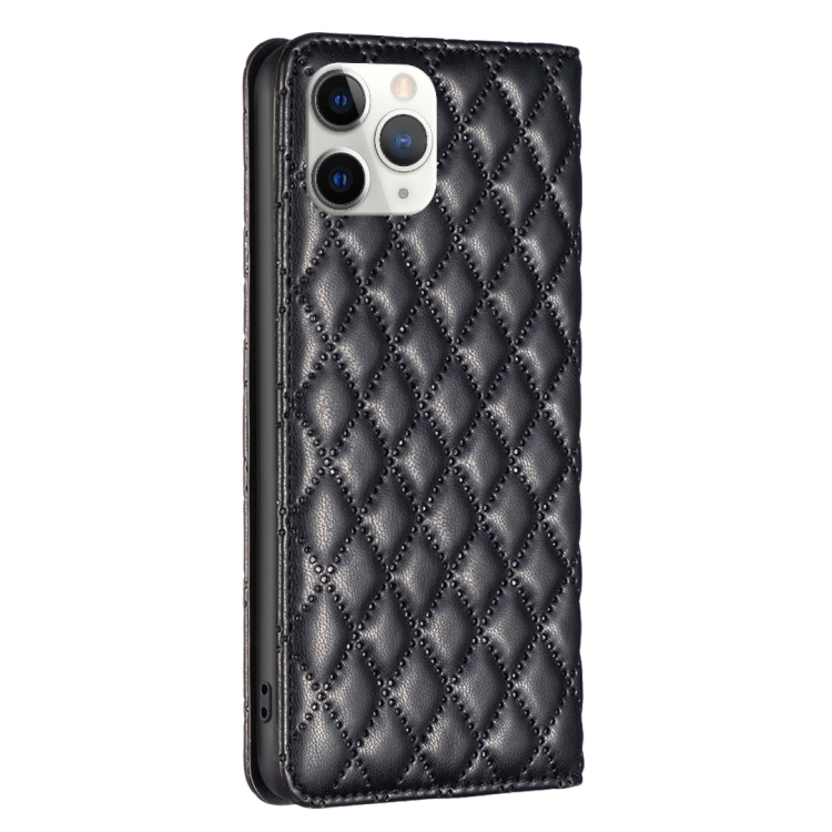 Funda de teléfono para iPhone 11 Pro Diamond Lattice con tapa de cuero magnético (Negro)