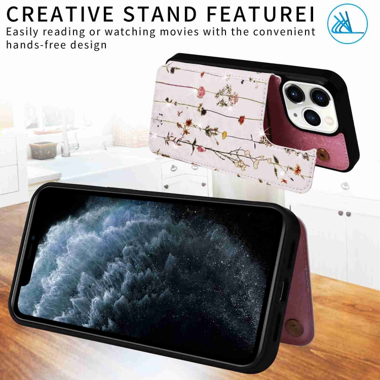 Estuche Antirrobo para Teléfono iPhone 11 Pro Rfid con Doble Hebilla (Mundo de Flores Secas)
