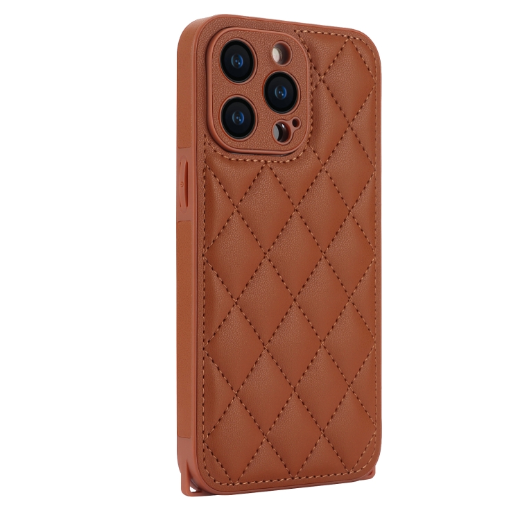 Estuche para Teléfono iPhone 11 Pro Textura Rómbica y Cordón Doble (Marrón)