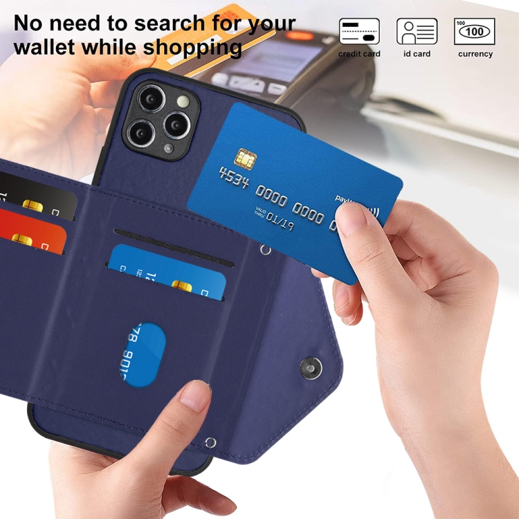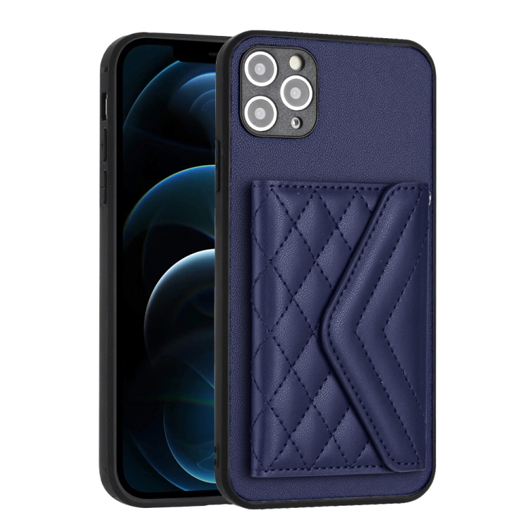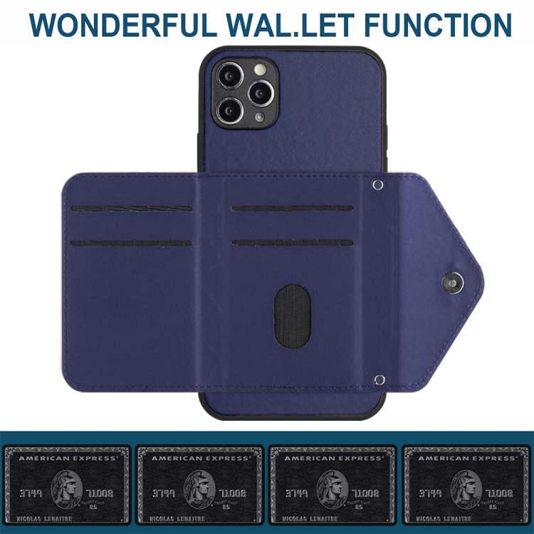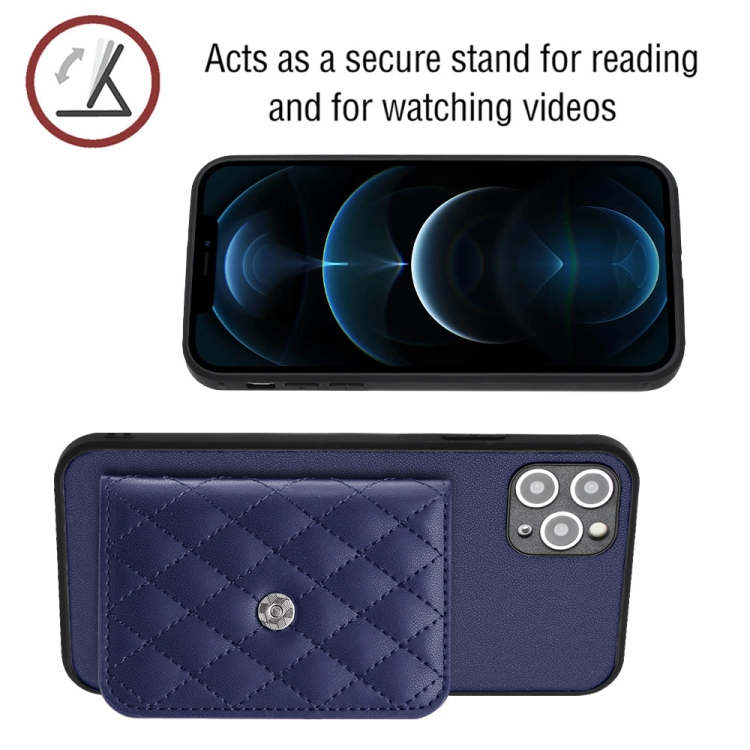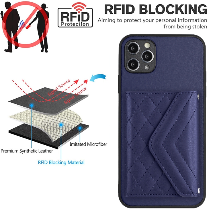 Estuche para Teléfono iPhone 11 Pro Rfid con Bolsa para Tarjetas Textura Rómbica y Cordón Largo (Púrpura Oscuro)