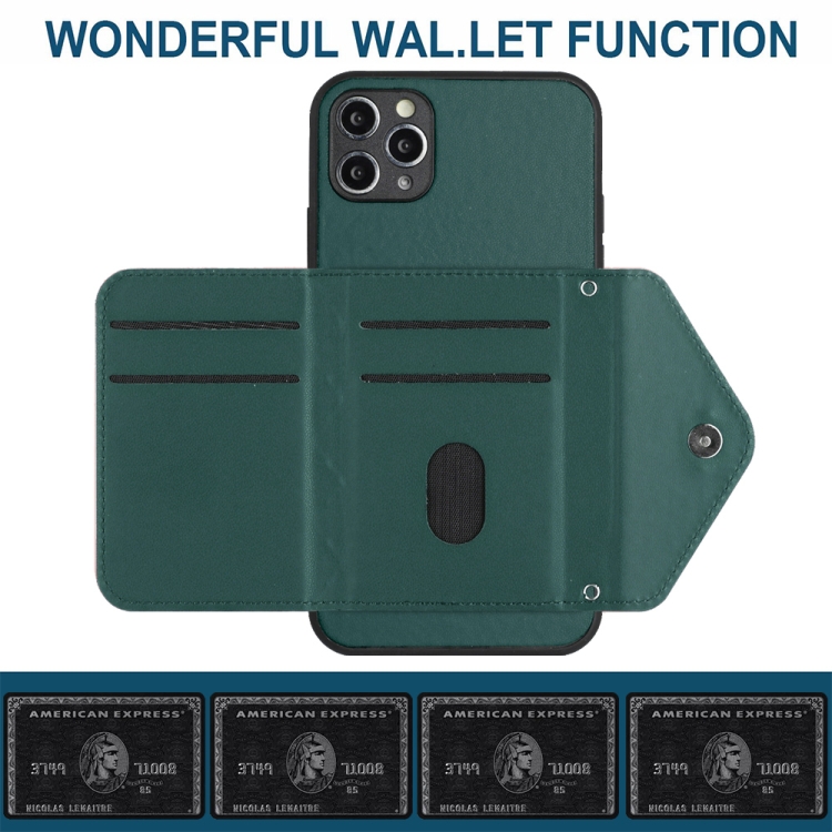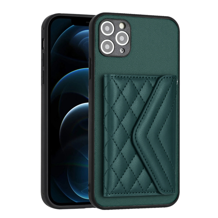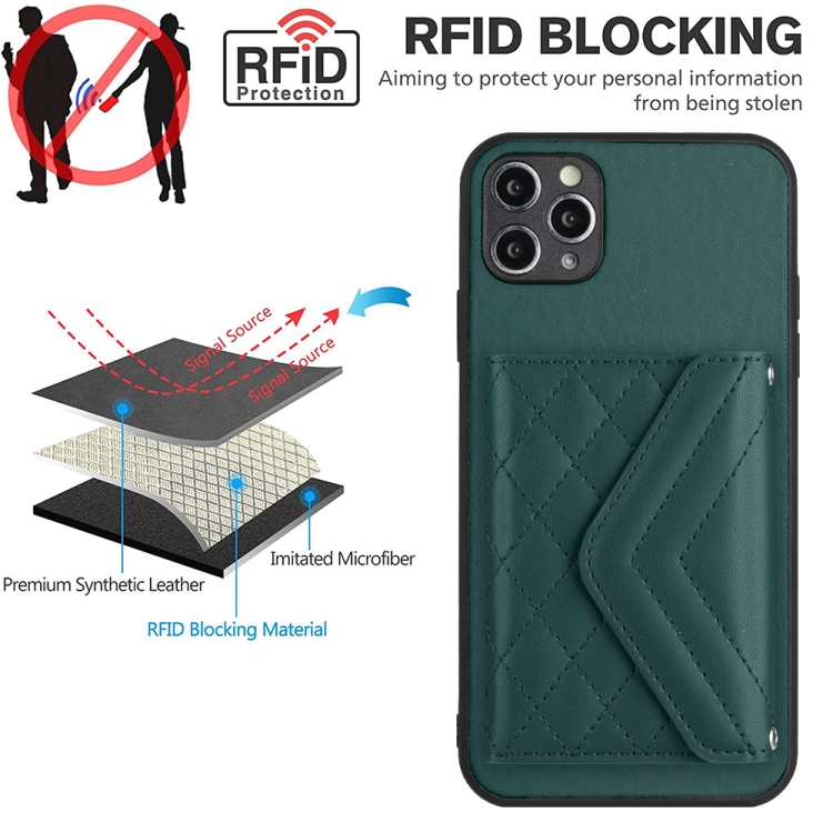 Estuche para Teléfono iPhone 11 Pro Rfid con Bolsa para Tarjetas Textura Rómbica Cordón Largo (Verde)