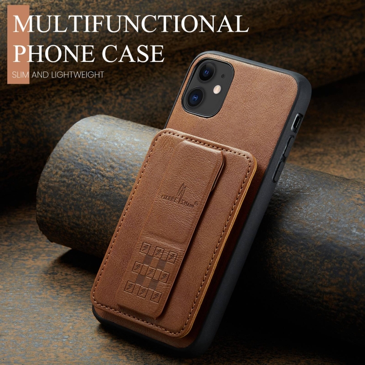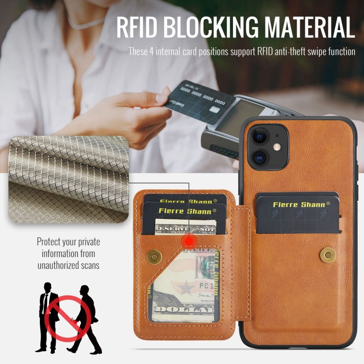 Funda para Teléfono Fierre Shann iPhone 11 Pro Oil Wax con Tarjetero Cuero de Vaca (Marrón)
