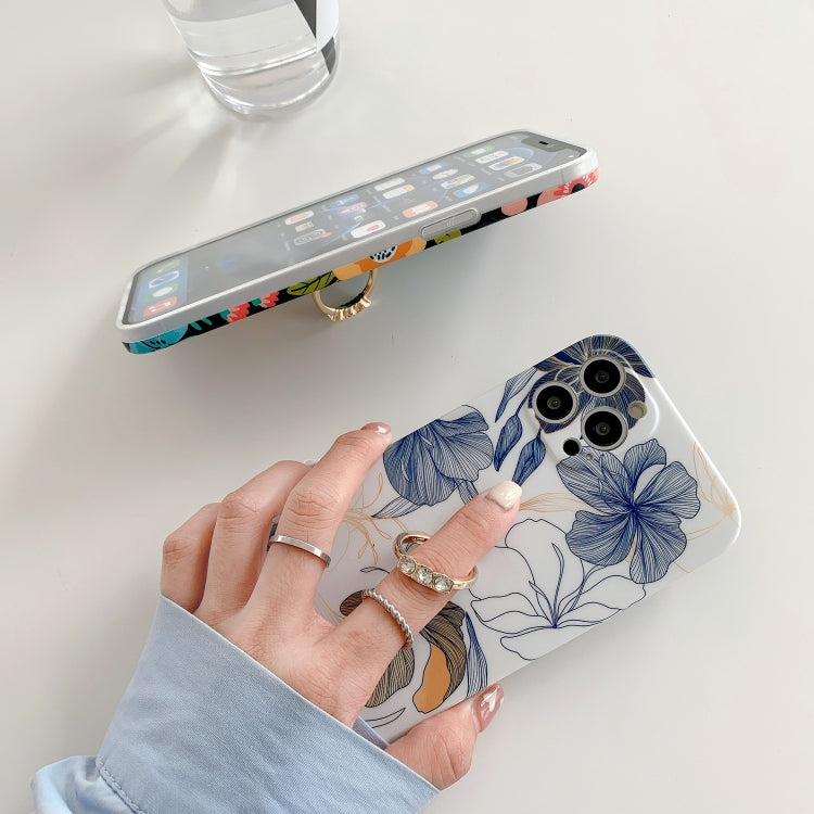 Funda TPU iPhone 11 Pro Flasted Flowers Patrón IMD con Titular Anillo de Diamante de Metal (Gris)