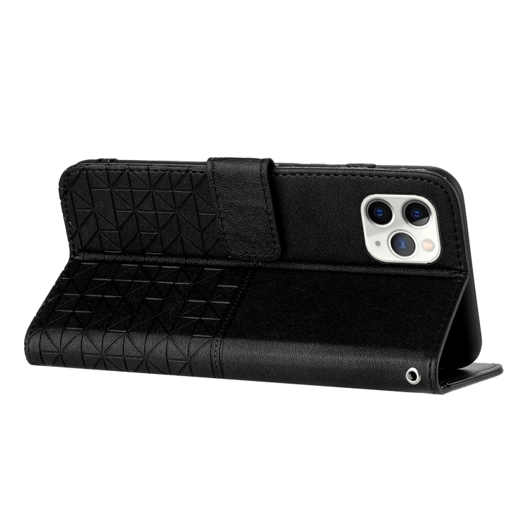 Funda de Cuero para iPhone 11 Pro con Textura Rómbica y Cordón (Negro)