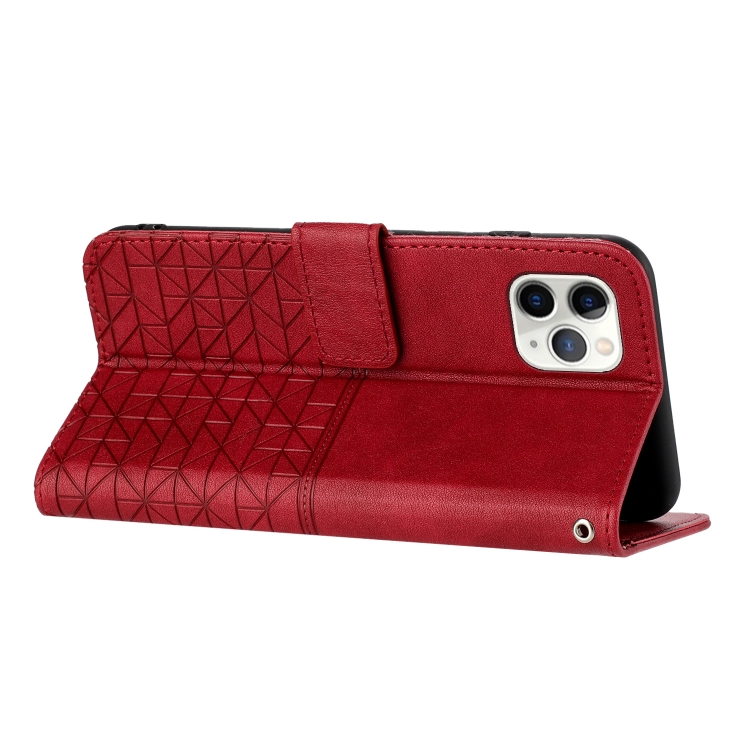 Funda para iPhone 11 Pro Cuero Textura Rómbica con Cordón (Rojo)