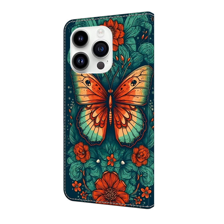 Funda de Cuero para iPhone 11 Pro Pintada con Cristales Mariposa de Flores