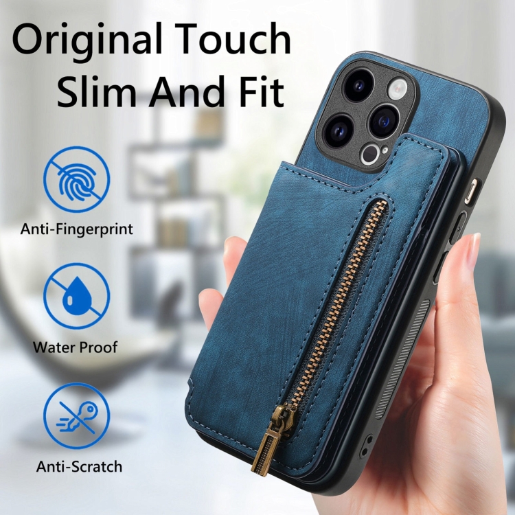 Funda para iPhone 11 Pro Cuero Retro con Cremallera y Billetera (Azul)