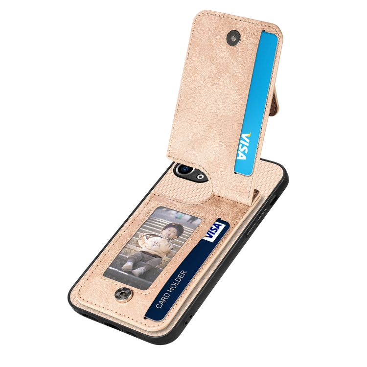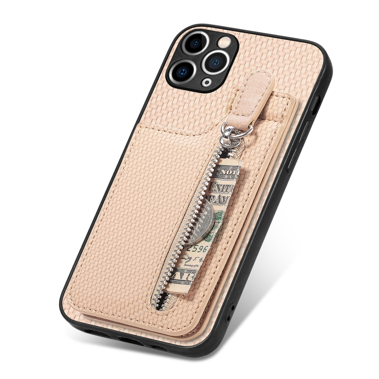 Funda de teléfono iPhone 11 Pro fibra de carbono con cremallera vertical (Caqui)
