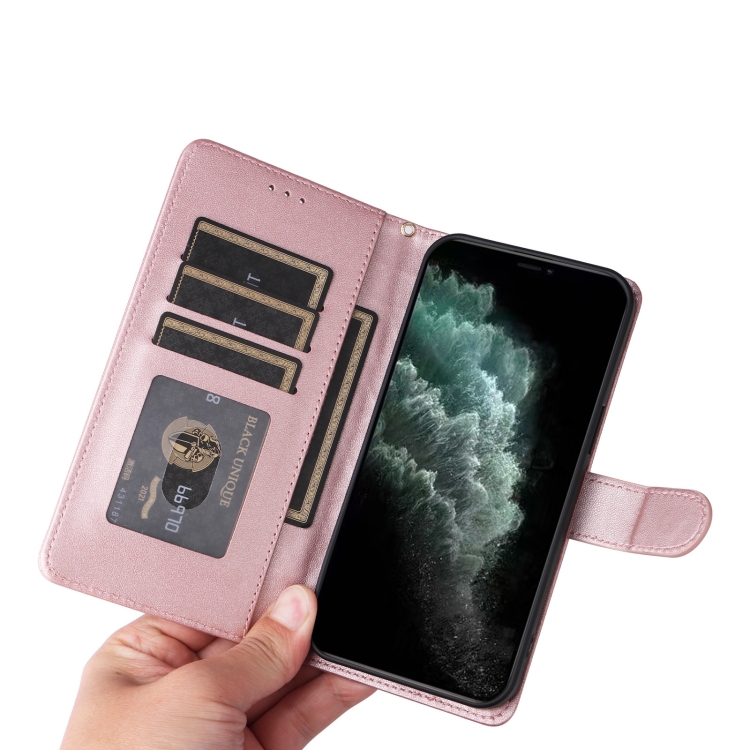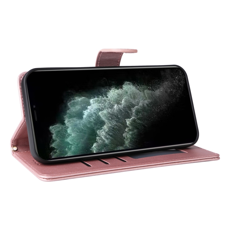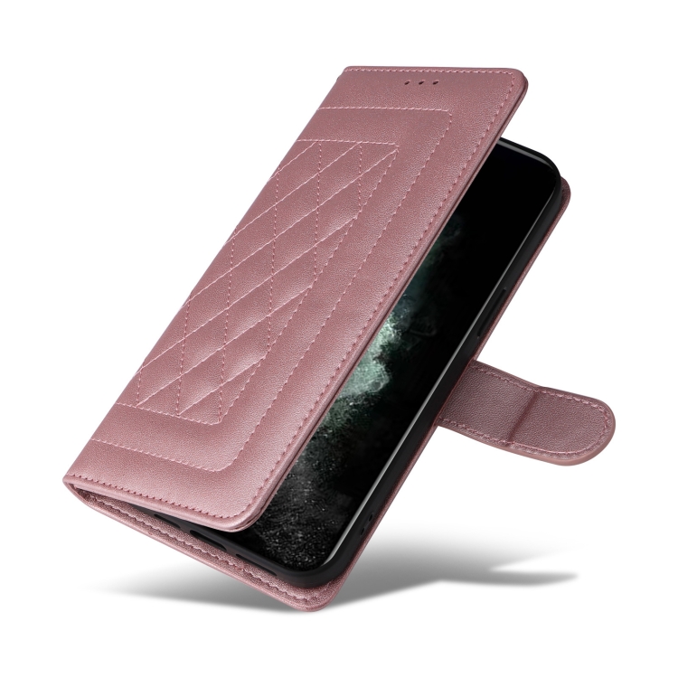 Funda de teléfono para iPhone 11 Pro con tapa de cuero con entramado de diamantes (Oro Rosa)
