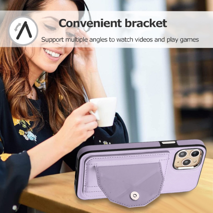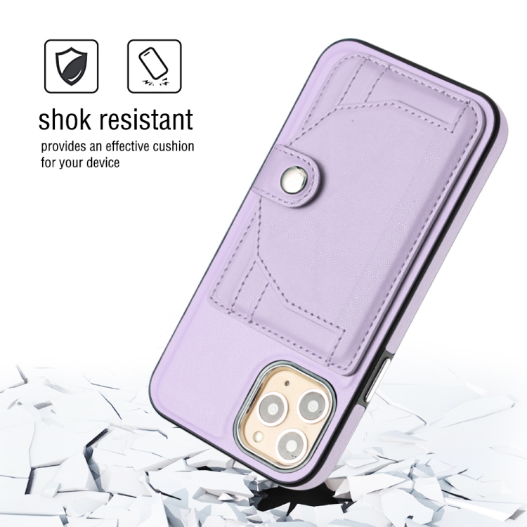 Funda de teléfono iPhone 11 Pro Cuero a prueba de golpes con tarjetero (Púrpura)
