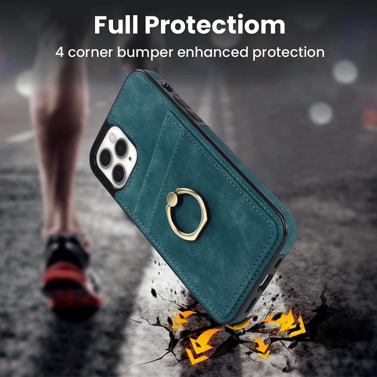 Funda de Teléfono iPhone 11 Pro Cuero Parche Vintage Soporte Anillo (Azul)