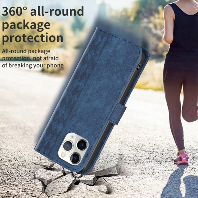 Funda de Teléfono iPhone 11 Pro Cuero En Relieve a Cuadros (Azul)