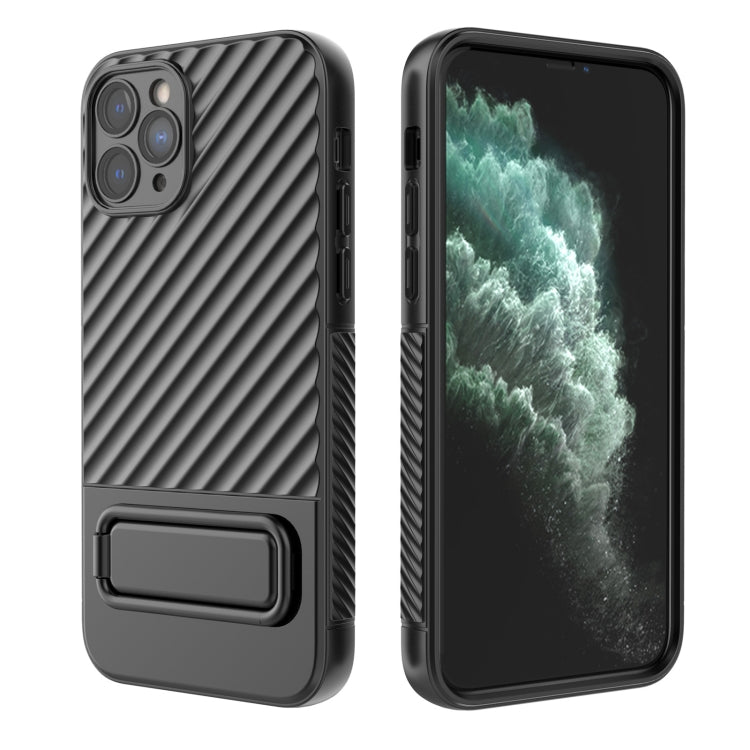 Funda de Teléfono TPU iPhone 11 Pro Textura Ondulada con Película de Lente (Negro)