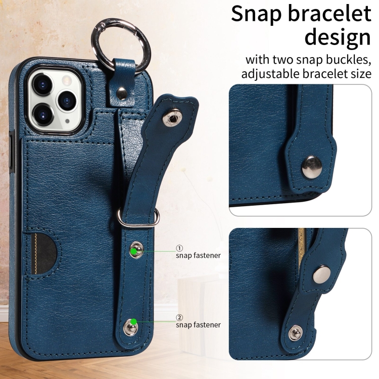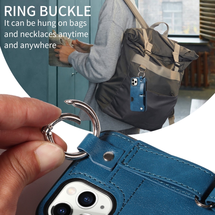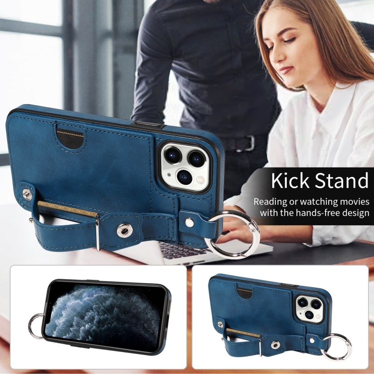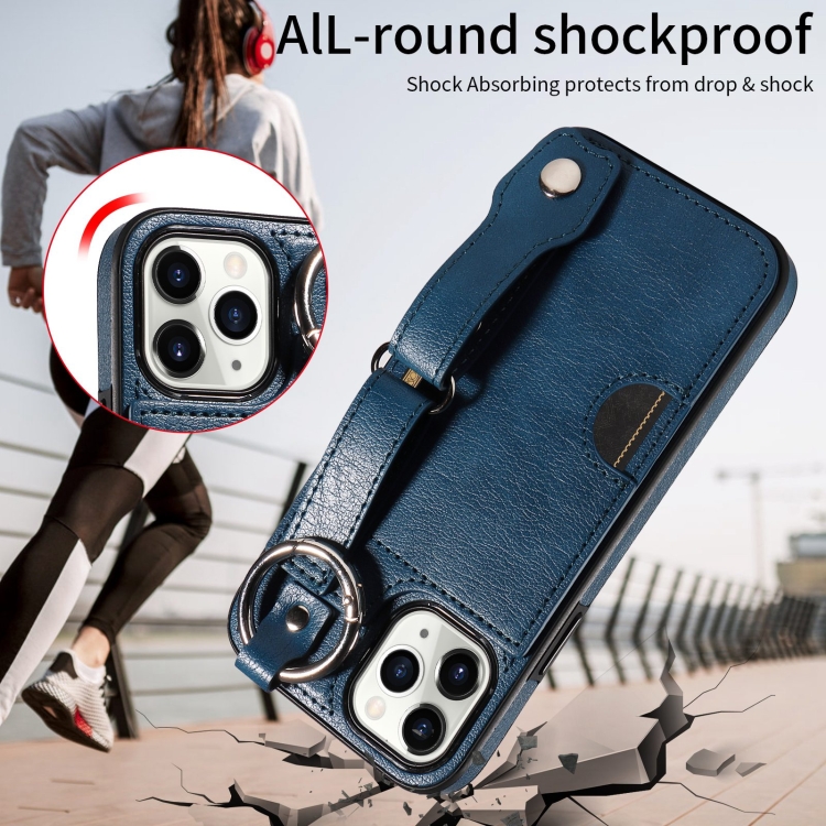 Funda para Teléfono iPhone 11 Pro con Anillo y Ranura para Tarjeta con Textura de Pantorrilla (Azul)