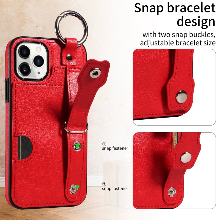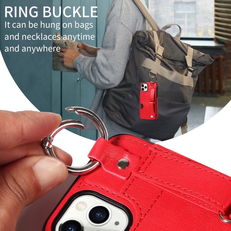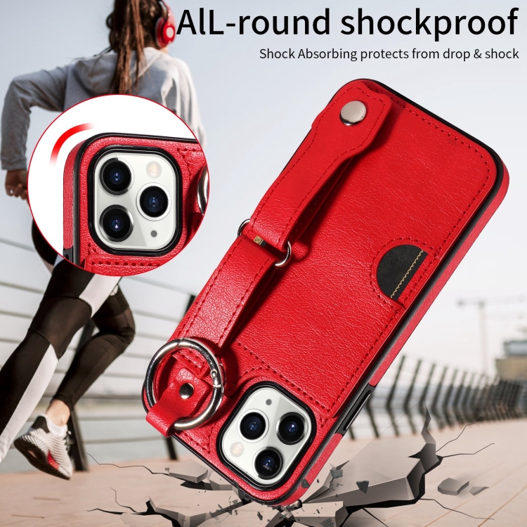 Funda para Teléfono iPhone 11 Pro con Anillo y Ranura para Tarjeta Textura de Pantorrilla (Rojo)