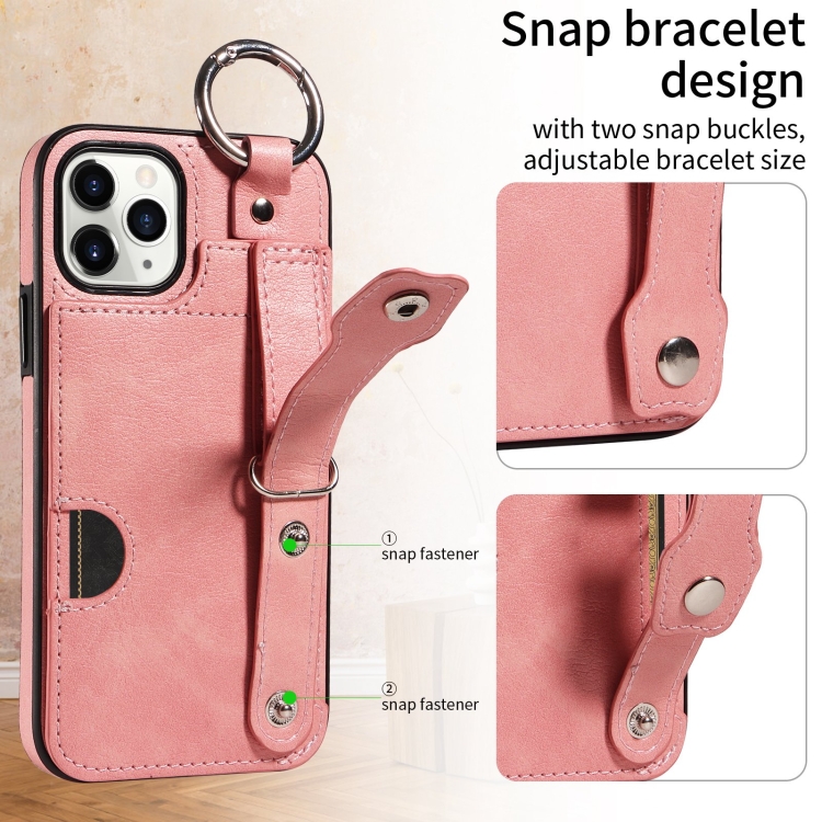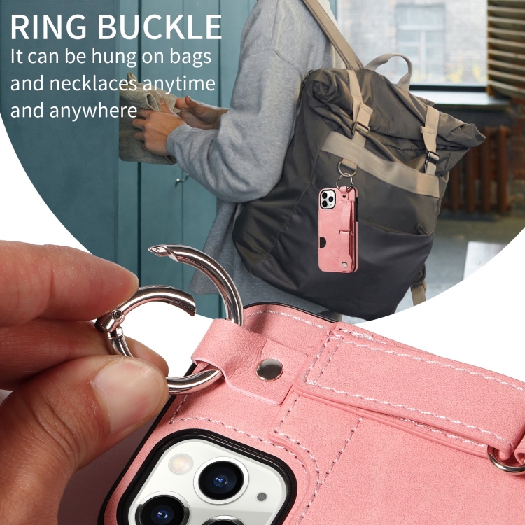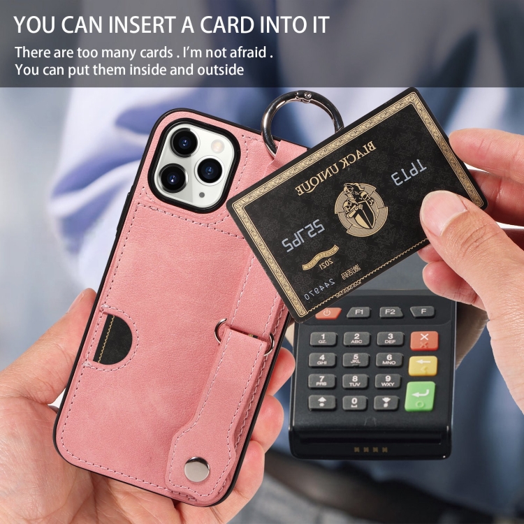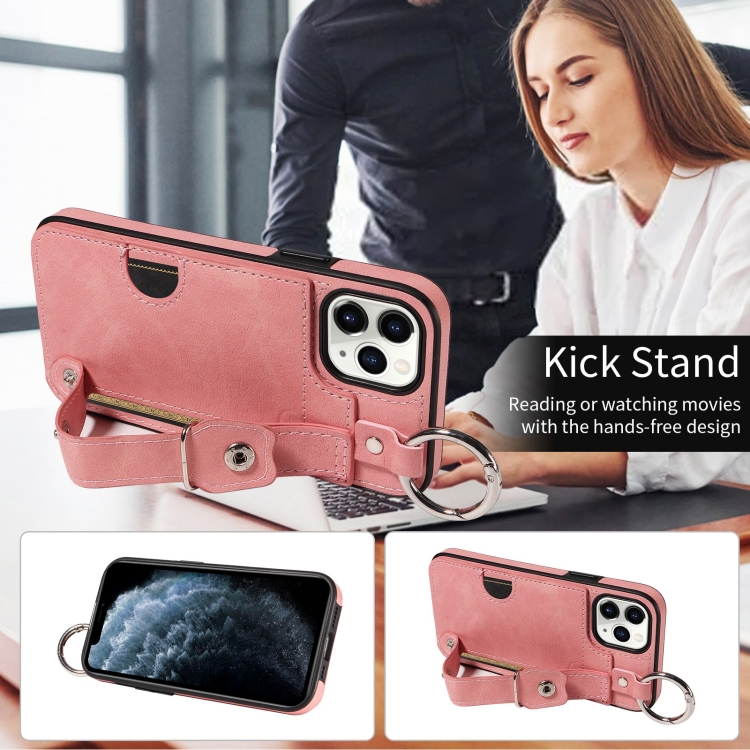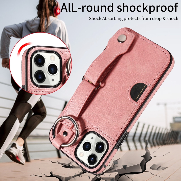 Funda para Teléfono iPhone 11 Pro con Anillo y Ranura para Tarjeta con Textura de Pantorrilla (Rosa)