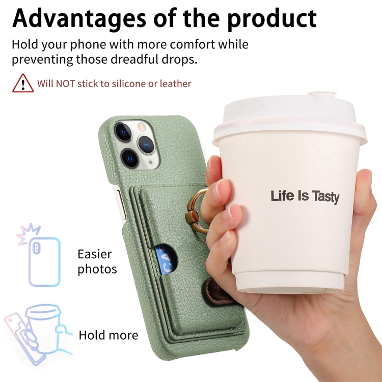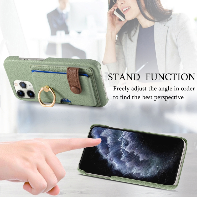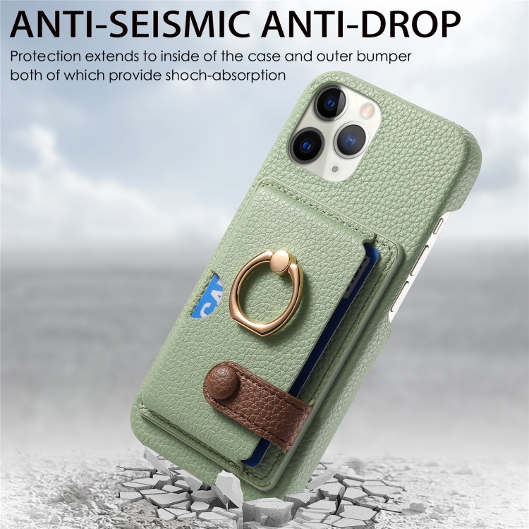 Funda para Teléfono iPhone 11 Pro con Parte Posterior de Tarjeta y Anillo de Borde de Aceite de Cuero Litchi (Verde Té)