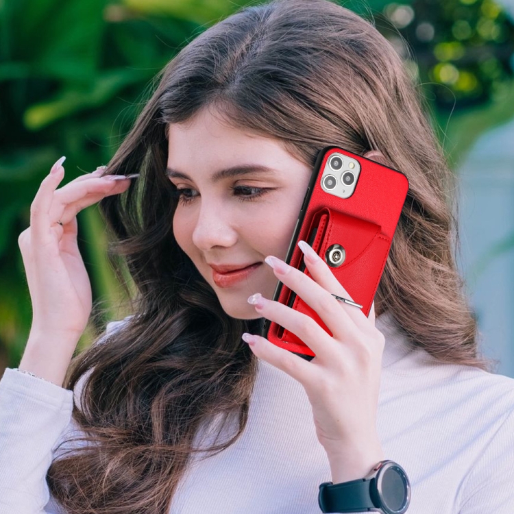 Funda para Teléfono iPhone 11 Pro con Soporte para Anillo y Bolsa para Tarjeta (Rojo)